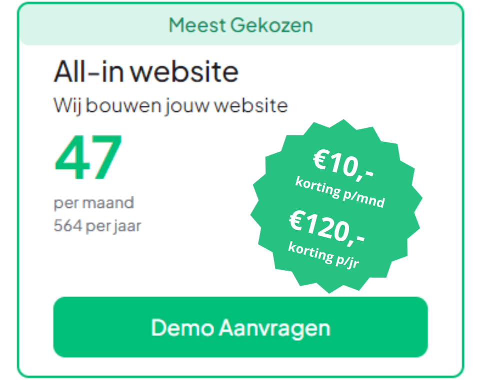 Een professionele website hoeft geen duizenden euro’s meer te kosten! Onze prijs bestaat uit eenmalige opstartkosten en maandelijkse hostingkosten.